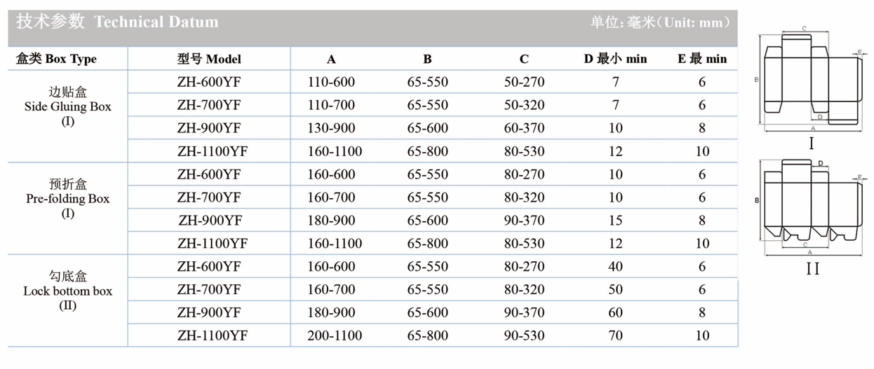 Function Single side gluing +double sides gluing+lock bottom+4/6 coner